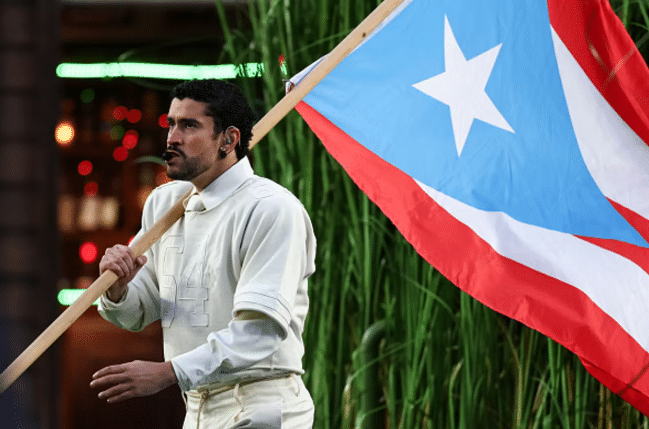 À un autre moment, l’artiste interprète El Apagón perché sur un poteau électrique défaillant. La chanson dénonce les coupures d’électricité récurrentes à Porto Rico depuis l’ouragan Maria en 2017, conséquence d’un réseau vétuste et d’une gestion contestée. Ce problème touche également d’autres territoires caribéens, y compris certaines îles des Antilles françaises. Là encore, la scénographie transforme un fait du quotidien en image politique, rappelant que derrière les rythmes dansants se cachent des réalités sociales lourdes. La performance est ponctuée de références à l’histoire latino-américaine, notamment à travers un passage devant un stand nommé « Tacos Villa », clin d’œil à Pancho Villa, figure majeure de la Révolution mexicaine. Une manière subtile de rappeler les luttes contre l’oppression et l’ingérence étrangère, sans jamais tomber dans le discours frontal.